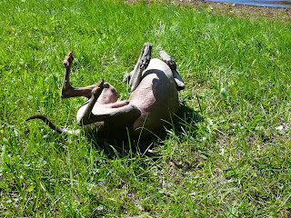 Neeo has recovered well from his hernia operation. Stitches were removed on Friday, and no need to use a collar anymore. IGs need to use a huge collar compared to their size. They have a long nose, and are super agile and flexible, even at 12 years... Neeo had a 20cm collar, and I couldn't let him be free with it without being supervised. He could have hurt himself when trying to run or jump with it. He is eating well, moving well, and full of energy as usual. One more month on leash exercise only, but after that Neeo can again join our walks in the woods.